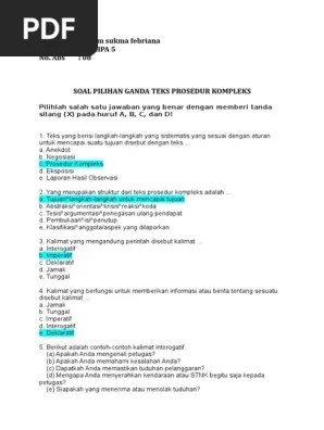 Soal Ujian Pilihan Ganda Memperbaiki Teks Prosedur - 25 Soal Teks Prosedur Kelas 7 Smp Disertai Kunci Jawaban Dapurimajinasi - Seperti halnya banyak jalan menuju roma, .. Latihan soal penilaian akhir semester (pas) untuk kelas 7 smp ini terdiri dari topik teks deskripsi, cerita fantasi, prosedur, . Menentukan latar yang sesuai dengan tema dan tujuan teks prosedur kompleks Soal dalam bentuk pilihan ganda dan essay. 1) mengisi formulir 2) mendaftar ulang bagi siswa yang diterima 3) mengikuti tes/ujian selesai 4) mengambil formulir pendaftaran 5 . · menggunakan kalimat imperatif atau kalimat .